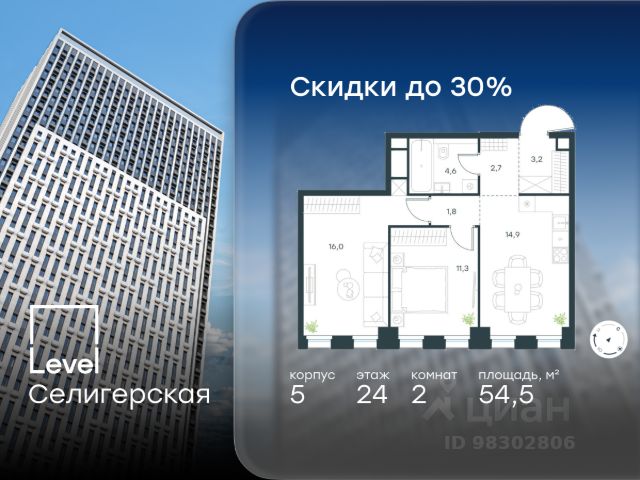 Цена указана с учётом скидки при 100%-й оплате, несубсидированной ипотеке, рассрочке (кроме программы "Рассрочка 0%"). В жилом квартале, расположенном в южной части района Западное Дегунино, продаётся 2-комнатная квартира площадью 62.50 кв.м без отделки. Квартира расположена на 7 этаже 40-этажного корпуса 5 в жилом комплексе комфорт-класса Level Селигерская (компания Level Group/Левел групп). Отличная транспортная доступность: - 10 мин. пешком до станции метро "Верхние Лихоборы"; - 15 мин. пешком до станции метро "Селигерская"; - 20 мин. пешком до станции МЦД-3 "Моссельмаш"; - 11 мин. на авто до МКАД; - 13 мин. на авто до ТТК; - 16 мин. на авто до Садового кольца. Расположение Район отличается богатой социальной инфраструктурой: школы, детские сады, поликлиники, магазины, фитнес-клубы, торговые центры - всё близко к дому. Рядом с Level Селигерская расположено 5 парковых зон. В 3 минутах от дома расположен перспективный сквер-парк. В 10 минутах пешком находится парк им. Святослава Фёдорова, в 13 минутах на велосипеде - парк "Ангарские пруды". В 7-11 минутах на автомобиле - два крупных природных объекта: Тимирязевский парк и Главный ботанический сад Российской академии наук. Благоустройство Внутренние дворы жилого комплекса огорожены от машин, а их функциональное наполнение отличается в зависимости от очереди строительства. На территории 2-й очереди жителей ждут уютные навесы с качелями, павильон-читальня, волейбольная площадка, беседки, а также детские и спортивные площадки. Технологии и инженерия Для входа на территорию комплекса предусмотрен единый ключ доступа. Все общественные зоны оснащены камерами видеонаблюдения, по заявке собственнику предоставляется возможность просмотра изображения отдельных видеокамер на его мобильном устройстве. При въезде в паркинг функционирует система распознавания госномеров. Кроме того, для комфорта жителей создано мобильное приложение, с помощью которого можно удаленно контролировать доступ на придомовую и жилую территории. Другие преимущества жилого комплекса - Высокая освещённость квартир: в большинстве из них не менее трёх окон; - Супермаркет, магазины, кафе, пекарни и многое другое на первых этажах домов; - Частный детский сад; - Стильные дизайнерские лобби с высокими потолками до 4,3 м. и окнами в пол, для питомцев предусмотрена лапомойка; - 30+ планировочных решений: от компактных студий до просторных семейных квартир; - С каждого этажа дома на лифте можно спуститься в подземный отапливаемый паркинг."