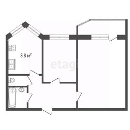 Общая жилая площадь составляет 32,2 квадратных метра, кухня — 8,8 квадратных метров. Особенностью квартиры является просторный балкон, выходящий на две комнаты, который может стать уютным местом для отдыха.