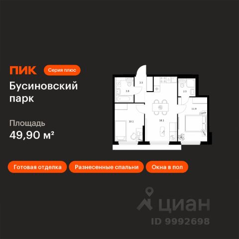 Продается уютная и функциональная 2х комнатная квартира с отделкой White box в ЖК Фестиваль Парк 2021 года постройки в 3 минутах пешком от метро Речной вокзал.