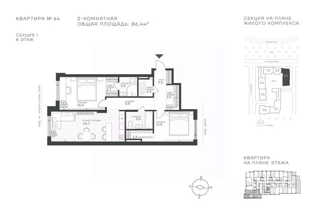 Продается 2-к квартира площадью 76.4 кв.м. на 8-м этаже в ЖК "Клубный квартал Крылатская 33". Прямая продажа от застройщика! Крылатская 33 - проект премиум-класса на западе Москвы от специализированного застройщика "Сияние". Комплекс расположен всего в 15 минутах от Садового кольца и Москва-Сити, а рядом есть большое количество зелёных зон: Крылатский и Москворецкий парки, Серебряный бор, Крылатские холмы - это создает идеальный баланс между приватностью и динамичным ритмом мегаполиса. Квартал сочетает высотные башни до 150 метров и камерные малоэтажные корпуса. Витражное остекление "в пол" наполняет квартиры светом и открывает захватывающие панорамы на Москву-реку и знаковые виды столицы. Здесь каждый найдет то, что подходит именно ему - от уютных студий до роскошных пентхаусов и квартир с собственными террасами. Внутренняя среда жилого комплекса продумана до мельчайших деталей, чтобы резиденты могли продуктивно работать и качественно отдыхать, не покидая территорию: • фитнес-центр, включающий в себя СПА-зону; • коворкинг с кофейней и быстрым интернетом; • общественная гостиная для организации клубных мероприятий; • ресторан с панорамным остеклением; • благоустроенный сад с зоной отдыха; • инновационная игровая площадка для детей всех возрастов; • консьерж-сервис 24/7, современные системы видеонаблюдения и пожаротушения; • двухуровневый паркинг и многое другое. Район Крылатское - точка притяжения для тех, кто выбирает активный образ жизни. В непосредственной близости расположены Гребной канал, Олимпийский велотрек, горнолыжный комплекс "Лата Трэк", гольф-клуб и парковые зоны. В проекте действуют привлекательные условия покупки: - выгода до 10% при 100% оплате (действует на ограниченный пул квартир, подробности уточняйте в отделе продаж). - рассрочка от застройщика 0% с первоначальным взносом от 20% на срок до 30.06.2027.