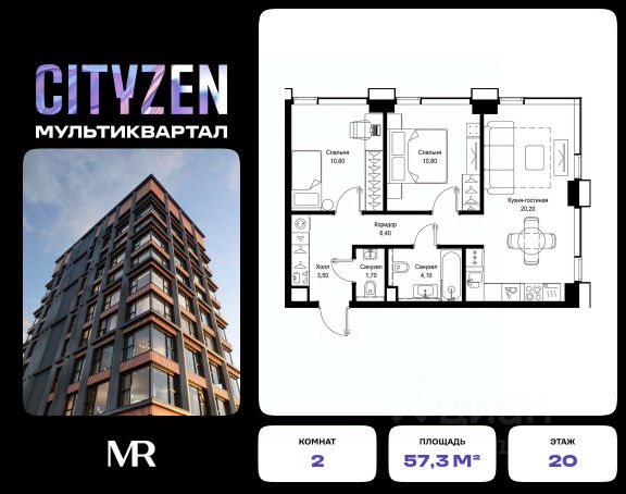 Продается 2-комнатная квартира от застройщика в жилом мультиквартале CITYZEN на 20-м этаже в корпусе #3 урбан-блока PARUS. Общая площадь лота составляет 57.30 м² В лобби корпуса #3 урбан-блока PARUS представлены: 1. Small-лобби с зоной отдыха 2. Почта 3. Колясочная 4. Лапомойка 5. Лифтовой холл 6. Санузел 7. Помещение уборочного инвентаря CITYZEN — это большой город в миниатюре. Инфраструктура мультиквартала организована по принципу шаговой доступности от подъезда до любой нужной точки: супермаркета, кофейни, салона красоты, фитнес-центра и др. В домах представлены лобби с атмосферой премиального резорта, дизайн которых вдохновлен французскими интерьерами 1960-х годов. Концепция благоустройства территории мультиквартала предусматривает большое количество вечнозеленых растений, что создает ощущение максимальной близости к природе. Жителей квартала ждут места для отдыха, игр, занятий спортом и прогулок с домашними питомцами. В приватном дворе с собственным садом предусмотрена зеленая комьюнити-гостиная для дружеского отдыха и общения, одна из стен которой подходит для кинопроекций, а также зеленый рабочий кабинет в саду (бизнес-гардена), оборудованный wi-fi станцией и usb-разъёмами для зарядки устройств. Маленьких жителей ждут авторские игровые площадки для разных возрастных групп (от 0 до 12 лет). Начало строительства - 1 квартал 2024 года. Окончание строительства - 3 квартал 2027 года.Компания MR предлагает своим клиентам специальные условия приобретения квартир в рамках программ ипотечного кредитования от банков-партнеров.