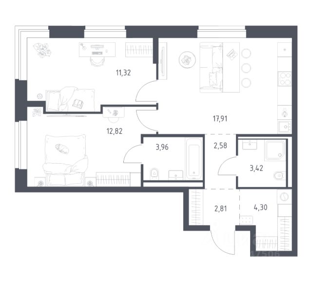 Продается двухкомнатная квартира с отделкой в городе-парке "Переделкино Ближнее". Общая площадь квартиры - 44,5 кв. м, этаж 6 из 17. Срок сдачи - 3 квартал 2028 года. Тип дома - монолитный. ТОЛЬКО ДО 30 АПРЕЛЯ выгодные условия на приобретение квартиры в ипотеку или рассрочку. Звоните - и мы подберем оптимальное предложение под ваш запрос! Корпус расположен в 13 фазе строительства и состоит из 6 секций с переменной этажностью 12-17 этажей. Около 13 фазы запланировано строительство многоуровневого паркинга на 300 м/мест. 13 фаза имеет уникальное расположение и находится непосредственно на берегу Федосьинского пруда, который является сердцем города-парка "Переделкино Ближнее". Город-парк "Переделкино Ближнее" расположен в 8 км от МКАД по Боровскому шоссе. ТРАНСПОРТНАЯ ДОСТУПНОСТЬ: - 15 минут пешком до станции МЦД-4 "Мичуринец" - 25 минут пешком до станции метро "Рассказовка" Солнцевской линии - 30 минут до центра Москвы - 2026 г. - открытие трассы Солнцево-Бутово-Варшавское шоссе РАЗВИТАЯ СОЦИАЛЬНАЯ ИНФРАСТРУКТУРА: - 7 детских садов, 3 школы - банки, продуктовые магазины, аптеки, фитнес центры, салоны красоты и пр БЛАГОУСТРОЙСТВО: - дворы без машин - игровые зоны и развивающие детские площадки - зоны для созерцательного и медитативного отдыха - зоны для занятий спортом ОСОБЕННОСТИ АРХИТЕКТУРЫ: - высокие потолки от 3,03 м - безбарьерные входные группы - колясочные в каждой входной группе - кладовые помещения расположены на -1 этаже каждой секции - в каждой секции 2 лифта: 1 пассажирский, 1 грузовой - на фасаде предусмотрены корзины для установки кондиционеров АВТОРСКИЙ ДИЗАЙН: Входные группы выполнены по авторскому дизайну, благодаря панорамному остеклению наполнены естественным светом. В каждой входной группе будет располагаться комфортабельная зона ожидания с возможностью зарядить электронные устройства, почтовые ящики, колясочная, акцентные пуфы и столик.