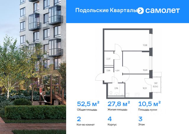 Строим кварталы для жизни с заботой о будущем. Предлагается 2-комнатная квартира комфорт-класса 53,88 кв.м в корпусе 4 на 3 этаже, в ЖК "Подольские Кварталы" Квартира без отделки. Доступность опции "отделка" и возможность комплектации мебелью и декором уточняйте у застройщика. Приобрести квартиру возможно по специальным акциям от застройщика, с текущими условиями акций можно ознакомиться в блоке "Акций". Цена динамическая и может отличаться, уточняйте актуальность у застройщика. "Подольские кварталы" — жилой комплекс в Новой Москве, рядом с Дубровицким лесом и рекой Десной. До станции МЦД-2 "Остафьево" - 5 минут на общественном транспорте, до станции МЦД-2 "Силикатная" — 8 минут на машине. Рядом — музей-заповедник "Остафьево", усадьбы Плещеево и Дубровицы. В квартале будут детский сад на 200 мест и учебно-воспитательный комплекс на 1 500 мест, в который войдут школа и детский сад. Первые этажи жилых корпусов займут квартиры, кафе, магазины и салоны красоты. Дворы-парки будут радовать жителей цветением и зеленью: здесь высадят липы, сосны, ели, клены и сирень. Плэйхаб станет местом встреч всех любителей активного отдыха: застройщик оборудует зоны тренажеров и воркаута, площадки для игр в настольный теннис, мяч, шахматы. Также появятся современные игровые площадки для детей. Для автовладельцев предусмотрен многоуровневый паркинг. В проекте — монолитные дома высотой от 9 до 12 этажей. Теплые оттенки фасадов соответствуют дизайн-коду "Янтарный берег". Фасады облицованы ложковой кирпичной кладкой.