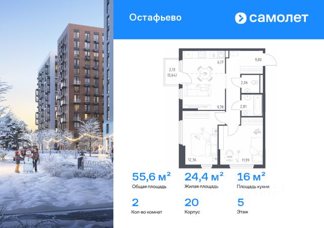 Строим кварталы для жизни с заботой о будущем. Предлагается 2-комнатная квартира комфорт-класса 57,4 кв.м в корпусе 21 на 7 этаже, в ЖК "Остафьево" Квартира без отделки. Доступность опции "отделка" и возможность комплектации мебелью и декором уточняйте у застройщика. Приобрести квартиру возможно по специальным акциям от застройщика, с текущими условиями акций можно ознакомиться в блоке "Акций". Цена динамическая и может отличаться, уточняйте актуальность у застройщика. "Остафьево" — масштабный жилой комплекс в Новой Москве, рядом с одноименным музеем-усадьбой и городским парком "Барыши". До станций МЦД "Щербинка" и "Остафьево" можно добраться на автомобиле за 57 минут. Часть домов уже сдана, на территории открыты две школы и три детских сада, а в будущем будет построена поликлиника, ТЦ, еще одна школа и три детских сада. Все необходимое рядом: на первых этажах домов работают магазины, аптеки и кафе. Дворы — приватные мини-парки без машин и посторонних. Кроме игровых площадок, для детей обустроили тематический плейхаб "Маяк". В будущем появятся плейхаб "Алиса в стране чудес", арт-объект "Тропа зеркал", а также большой ландшафтный парк. В квартале — монолитные дома комфортной высоты, от 10 этажей. Светлые фасады украшают кирпичные вставки в теплых природных оттенках.