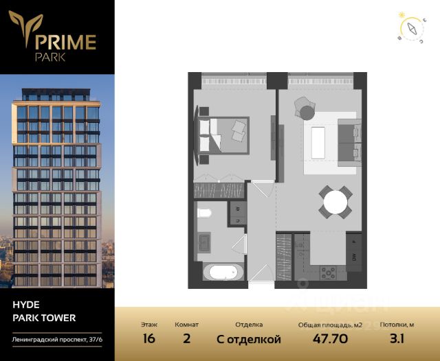 Эксклюзив компании Whitewill. Квартира с 1 спальней общей площадью 82 м² в комплексе премиум-класса Prime Park с презентабельной входной группой от британского бюро Dyer. Квартира с дизайнерской отделкой расположена на 6 этаже в корпусе R4. Интерьер оформлен в современном стиле в светлых лаконичных тонах. Окна ориентированы во внутренний благоустроенный парк и фонтан. Полностью меблирована и укомплектована всей необходимой техникой. Функциональная планировка включает просторную кухню-гостиную с обеденной и ТВ зонами, спальню с собственной ванной комнатой и гардеробной, гостевой санузел и прихожую. Благодаря панорамному остеклению пространство наполнено естественным светом и теплом. Главное о доме. В PRIME PARK вы живёте в ритме города и отдыхаете как в частном клубе: внутри квартала — 6гектарный ландшафтный парк с аллеями, фонтаном, водой, артобъектами, детскими площадками и воркаутзонами. На первых уровнях — сервисы, кафе, рестораны, салоны и фитнесцентр, чтобы не покидать двор. Архитектурный ансамбль башен до 41 этажа с видовыми квартирами, территория закрыта от машин, паркинг — под землёй. Локация — Ленинградский проспект, 37: близко к центру, но с пригородным комфортом — зелень и крупные парки рядом, городская инфраструктура в шаговой доступности. Главное о локации. Хорошёвский — "город в городе": утро — пробежка по аллеям парка Ходынское поле с прудами, детскими площадками и сухим фонтаном; днём — отдых на траве или катание на роликах и самокатах. Для спорта — ВЭБ Арена (матчи ЦСКА, концерты) и Дворец спорта Мегаспорт (ледовые шоу, турниры). Перед премьерой — бокал в брассери на Ходынском бульваре или стейк в Torro Grill. Для семьи важна учебная инфраструктура: школы 1409, 1288 и школа 141 им. Рихарда Зорге, входящая в лучшие подборки округа. Редкое сочетание зелени, спорта, гастрономии и сильных школ без дальних переездов. Комментарий эксперта. Меня зовут Ирина Партионова — брокер компании Whitewill. Я отвечаю за продажу этого лота. Свяжитесь со мной, чтобы получить расширенную презентацию, больше фотографий или договориться о просмотре. Могу провести экскурсию по локации и познакомить вас с этим домом. ID 320 856.