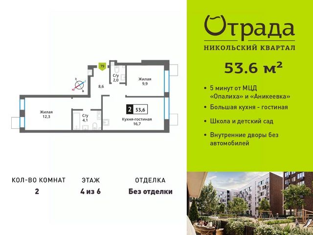 Купить 2-комнатную квартиру рядом со школой рядом с метро Аникеевка