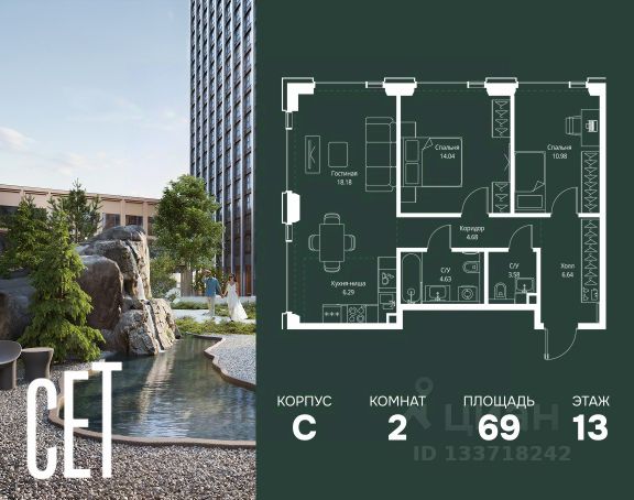 Прямая продажа от застройщика. В ЖК Сет продается 2-комнатная квартира площадью 51.28 м², расположенная в корпусе А, на 31 этаже 52 этажного дома. Сет имеет стратегически выгодное расположение в ЗАО, в районе с большой историей и блестящим будущим: между природной зоной долины реки Сетунь и Кутузовским проспектом. В рамках возведения первой очереди предусмотрено три корпуса высотой 18, 45 и 59 этажей. На верхних этажах спроектированы общедоступные смотровые площадки с панорамным обзором на центр столицы. Преимущества проекта: • Функциональные планировочные решения • Контроль проникновения через входную дверь • Система управления освещением и температурой в квартире • Система защиты от протечек с функцией перекрытия воды • Вход в подъезд по биометрическим считывателям Face ID • Скоростные лифты • Двухуровневый подземный охраняемый паркинг на 495 машино-мест Застройка Сет включает в себя не только жилые корпуса, но и инфраструктурные объекты. Все необходимое для повседневного комфорта будет расположено в шаговой доступности: • Фитнес-Клуб с бассейном • Ведущая городская школа, детский сад и школа искусств • Центр культуры и досуга • Медицинский центр • Кафе и рестораны Расположение комплекса: Пешком: • Метро "Давыдково" - 17 минут • Парк "Долина реки Сетунь" - 3 минуты • Открытие новых станций метро в шаговой доступности в будущем Инфраструктура: Разнообразить свой день резиденты Веер смогут также проводя больше времени на свежем воздухе. Двор разделен на 4 зоны разных эмоций и действий, которые пересечены и соединены веерными прогулочными маршрутами: • Спортивная площадка устроена в глубине "Кленовой рощи" • В "Чайном домике" будет создан навес с утеплением для отдыха в любую погоду • Площадки для детей воплотятся в "Волшебный лес" с цветами, зеркалами и световым дизайном • "Центральная площадь" устроена у водного оазиса живописного пруда. На машине: • "Москва-Сити" - 15 минут • Садовое кольцо - 20 минут • ТЦ "Океания" - 8 минут • ТЦ "Времена года" - 13 минут • Сколково - 12 минут • Гребной канал - 17 минут Компания MR предлагает своим клиентам специальные условия приобретения квартир в рамках программ ипотечного кредитования от банков-партнеров.