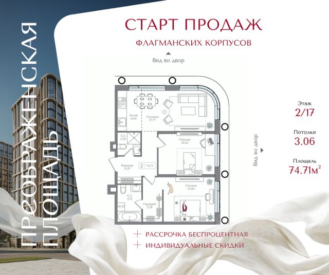 В премиум-квартале "Дом 56" на Бауманской напрямую от девелопера ГК "Галс-Девелопмент" представлена 2-комнатная квартира на 18 этаже общей площадью 83.00 м². Квартира предлагается без отделки, со свободной планировкой. Пространство позволяет воплотить дизайн - проект в соответствии с Вашими предпочтениями. "Дом 56" - расположен в Басманном районе на ул. Фридриха Энгельса, всего в 12-15 минутах пешком от станций метро "Бауманская" и "Электрозаводская". Рядом с премиум-кварталом находятся важные городские магистрали - ТТК, набережная реки Яузы и Бакунинская улица, переходящая в Спартаковскую и Маросейку. Архитектурный стиль "Дома 56" - параметрический минимализм. Футуристические фасады квартала с "эффектом закручивания" словно вращаются вокруг своей оси. Динамичный образ башен дополняет эффектное остекление - окна в пол будут в каждой квартире. "Дом 56" станет органичным продолжением современной научно-креативной среды Басманного района: - Развитое окружение - десятки различных точек притяжения; - Близость престижных вузов: МГТУ, МЭИ и Британская высшая школа дизайна; - Соседство с Технологической долиной и всем необходимым для запуска стартапа; - Набережные и парки для спорта и отдыха. "Дом 56" оснащён первоклассными инженерными системами. Входы на территорию, в здание и паркинг оборудованы системой контроля и управления доступом. С любого этажа в лобби и паркинг спускаются быстрые и бесшумные лифты премиального бренда. Во внутреннем приватном дворе будет создано пространство в бионическом стиле с лаунж-зонами, подвесными качелями, детскими плейхабами для разных возрастов, площадками для спорта и отдыха в окружении зелени. На двух подземных уровнях предусмотрен подземный паркинг и кладовые помещения.