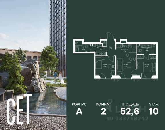 Прямая продажа от застройщика. В ЖК Сет продается 2-комнатная квартира площадью 51.28 м², расположенная в корпусе А, на 31 этаже 52 этажного дома. Сет имеет стратегически выгодное расположение в ЗАО, в районе с большой историей и блестящим будущим: между природной зоной долины реки Сетунь и Кутузовским проспектом. В рамках возведения первой очереди предусмотрено три корпуса высотой 18, 45 и 59 этажей. На верхних этажах спроектированы общедоступные смотровые площадки с панорамным обзором на центр столицы. Преимущества проекта: • Функциональные планировочные решения • Контроль проникновения через входную дверь • Система управления освещением и температурой в квартире • Система защиты от протечек с функцией перекрытия воды • Вход в подъезд по биометрическим считывателям Face ID • Скоростные лифты • Двухуровневый подземный охраняемый паркинг на 495 машино-мест Застройка Сет включает в себя не только жилые корпуса, но и инфраструктурные объекты. Все необходимое для повседневного комфорта будет расположено в шаговой доступности: • Фитнес-Клуб с бассейном • Ведущая городская школа, детский сад и школа искусств • Центр культуры и досуга • Медицинский центр • Кафе и рестораны Расположение комплекса: Пешком: • Метро "Давыдково" - 17 минут • Парк "Долина реки Сетунь" - 3 минуты • Открытие новых станций метро в шаговой доступности в будущем Инфраструктура: Разнообразить свой день резиденты Веер смогут также проводя больше времени на свежем воздухе. Двор разделен на 4 зоны разных эмоций и действий, которые пересечены и соединены веерными прогулочными маршрутами: • Спортивная площадка устроена в глубине "Кленовой рощи" • В "Чайном домике" будет создан навес с утеплением для отдыха в любую погоду • Площадки для детей воплотятся в "Волшебный лес" с цветами, зеркалами и световым дизайном • "Центральная площадь" устроена у водного оазиса живописного пруда. На машине: • "Москва-Сити" - 15 минут • Садовое кольцо - 20 минут • ТЦ "Океания" - 8 минут • ТЦ "Времена года" - 13 минут • Сколково - 12 минут • Гребной канал - 17 минут Компания MR предлагает своим клиентам специальные условия приобретения квартир в рамках программ ипотечного кредитования от банков-партнеров.