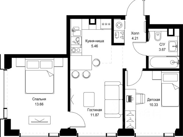 Прямая продажа от застройщика. В ЖК SET продается 2-комнатная квартира площадью 48.21 м², расположенная в корпусе А, на 47 этаже 52 этажного дома. SET имеет стратегически выгодное расположение в ЗАО, в районе с большой историей и блестящим будущим: между природной зоной долины реки Сетунь и Кутузовским проспектом. В рамках возведения первой очереди предусмотрено три корпуса высотой 18, 45 и 59 этажей. На верхних этажах спроектированы общедоступные смотровые площадки с панорамным обзором на центр столицы. Преимущества проекта: • Функциональные планировочные решения • Контроль проникновения через входную дверь • Система управления освещением и температурой в квартире • Система защиты от протечек с функцией перекрытия воды • Вход в подъезд по биометрическим считывателям Face ID • Скоростные лифты • Двухуровневый подземный охраняемый паркинг на 495 машино-мест Застройка SET включает в себя не только жилые корпуса, но и инфраструктурные объекты. Все необходимое для повседневного комфорта будет расположено в шаговой доступности: • Фитнес-клуб с бассейном • Ведущая городская школа, детский сад и школа искусств • Центр культуры и досуга • Медицинский центр • Кафе и рестораны Расположение комплекса: Пешком: • Метро "Давыдково" - 17 минут • Парк "Долина реки Сетунь" - 3 минуты • Открытие новых станций метро в шаговой доступности в будущем Инфраструктура: Разнообразить свой день резиденты VEER смогут также проводя больше времени на свежем воздухе. Двор разделен на 4 зоны разных эмоций и действий, которые пересечены и соединены веерными прогулочными маршрутами: • Спортивная площадка устроена в глубине ""Кленовой рощи"" • В ""Чайном домике"" будет создан навес с утеплением для отдыха в любую погоду • Площадки для детей воплотятся в ""Волшебный лес"" с цветами, зеркалами и световым дизайном • ""Центральная площадь"" устроена у водного оазиса живописного пруда. " На машине: • "Москва-Сити" - 15 минут • Садовое кольцо - 20 минут • ТЦ "Океания" - 8 минут • ТЦ "Времена года" - 13 минут • Сколково - 12 минут • Гребной канал - 17 минут Компания MR предлагает своим клиентам специальные условия приобретения квартир в рамках программ ипотечного кредитования от банков-партнеров.