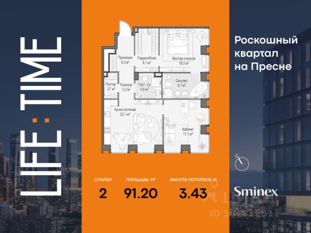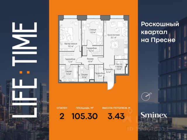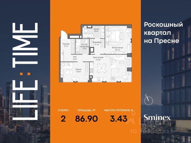 Life Time - роскошный современный квартал на Пресне, в наиболее быстро растущем премиальном районе ЦАО. Его насыщенная инфраструктура и выгодное расположение дарят время для жизни. Вы больше не тратите его на дорогу или ожидание, при этом ни в чём себе не отказывая. На территории предусмотрено всё для комфортной жизни: • двор-парк площадью 1,8 гектара с прудом и фонтанами; • Clubhouse - инфраструктурный центр в отдельном здании с исчерпывающими возможностями для спорта, отдыха и досуга только для жителей; • спортивная инфраструктура на улице и в помещении, в том числе бассейн длиной 25 метров, хот-таб, хаммам, сауна, бьюти-зона; • клубная гостиная с террасой; • всё для развития и досуга детей любого возраста, в том числе детский сад и школа. Life Time находится в центре сложившегося премиального района, в окружении многочисленных парков. Удобная транспортная доступность и прямой выезд на Звенигородское шоссе позволяют без проблем добраться до Садового кольца и Москва-Сити. Архитектурный стиль квартала - роскошный минимализм. Дома десятилетиями будут выглядеть современно. В Life Time представлен широкий выбор как квартир, так и особых форматов: двухэтажные пентхаусы с каминами и террасами, скай-виллы.