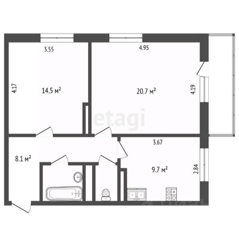В квартире две изолированные комнаты 18 и 16 метров, раздельный санузел и большая, светлая 6 метровая лоджия. Окна на восток и юг, из окна большой комнаты видно реку (фрагмент, но всё же).