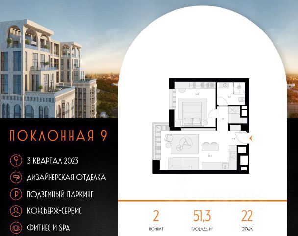 Продаётся 2-комн. квартира площадью 56,4 кв.м на 4 этаже 32 этажного дома (Корпус 6, Секция 1) проекта ПИК Барклая 6. Светлый просторный подъезд на уровне земли, функциональная планировка, большие окна, предчистовая отделка. Жилой квартал "Барклая 6" расположен в районе Филёвский Парк, рядом с набережной Москвы-реки и парком "Фили". В 10 минутах пешком находятся станции метро "Парк Победы" и "Фили", до "Багратионовской" можно дойти за 8 минут. На машине через новый путепровод доехать до Кутузовского проспекта получится за 3 минуты, до ТТК — за 10 минут. В уютном проекте "Барклая 6" восемь жилых домов с переменной этажностью — 12, 24 и 32 этажа, подземный паркинг, детский сад на 125 малышей и начальная школа на 225 детей. Внутри квартала появится приватный парк для жителей, где можно гулять, играть на детских и спортивных площадках. На территории парка будет Вайфай, в лавочках предусмотрены разъёмы для зарядок. На первых этажах откроются полезные сервисы, магазины и кафе, куда можно будет спуститься за кофе в домашних тапочках. Уникальную архитектуру домов подчеркнёт подсветка фасадов. В светлых лобби, оформленных по индивидуальному дизайн-проекту, предусмотрены удобные зоны ожидания, гостевая туалетная комната и лапомойки для собак, чтобы питомцы попадали в квартиру уже чистыми. Район вокруг "Барклая 6" хорошо развит. Здесь много школ и детских садов, работают поликлиники, спортивные школы и дворец водных видов спорта "Фили". Рядом — магазины и торговые центры. В планах города Москвы обновить район рядом с "Барклая 6". Уже расширена улица Барклая и запущен путепровод для прямого и удобного выезда на Кутузовский проспект, а по его дублеру, Проспекту Багратиона, сможете быстро доехать до "Москва-Сити" или МКАД. Изменится "Горбушкин двор": здесь реконструируют старые здания, построят новые дома, офисы, школы и детские сады. Со временем окружение жилого квартала станет более современным и аккуратным. Артикул 812814 (Застройщик АО "СПЕЦИАЛИЗИРОВАННЫЙ ЗАСТРОЙЩИК"ФИЛИТ")
