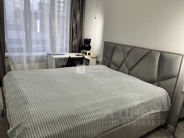 Общая площадь квартиры 59,9 м², расположена на 2 этаже 23-этажного дома, высота потолков 2,95 м. Кухня- гостинная 17,4 м² с застекленной лоджией, две отдельных комнаты (13,8+11,9 м²), гардеробная, два санузла с качественной отделкой и отличной сантехникой, стиральная машина. Просторный коридор, на стенах обои, на полу напольная плитка и ламинат, имеется мебель. За окнами парковка, магазины, кафе, аптека. Тихая улица, шума нет.