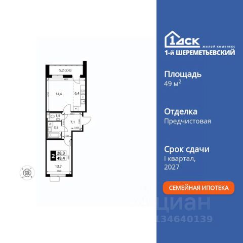 ДОПОЛНИТЕЛЬНАЯ СКИДКА ДО 10% В ОФИСЕ ПРОДАЖ! Прямая продажа от застройщика! Жилой Комплекс класса Комфорт Плюс. Продаётся 2-к квартира номер 476 общей площадью 47 кв.м. на 17-м этаже 17 этажного здания. Без отделки. Особенности квартиры: - Просторная спальня, в которой можно разместить большую кровать. - Распашная планировка - отличное сочетание удобства и свободы. - Раздельный санузел - больше удобства для всех членов семьи. - Евроформат - просторное и удобное жилье с отличной планировкой. - Гибкая планировка - создайте пространство по своему вкусу. - Увеличенная высота потолков - ощущение простора и легкости. - Можно оборудовать рабочее место - комфорт для работы и учёбы. - Кухня-гостиная - идеальное пространство для встреч с близкими. - Линейная кухня - функциональность и практичность в одном решении. - Лоджия - уютное место для отдыха и тишины. Информация о комплексе: ЖК 1-й Шереметьевский расположен в самом центре Подрезково, от него всего 6 минут пешком до одноименной станции ж/д и планируемой к открытию МЦД-3. В комплексе яркие и уютные, лобби, большая колясочная, лапомойка. Благодаря гостевому санузлу на 1 этаже прогулки станут по-настоящему долгими. Два лифта пассажирский и грузовой.Во всех корпусах 1-го Шереметьевского там устроены кладовые, а в корпусах 3-5 есть подземный паркинг. В ЖК 1-й Шереметьевский разнообразие площадей и планировок. Большие кухни-гостиные: в них два окна или больше. Во всех квартирах площадью от 40 кв.м. и выше спроектировано 2 санузла. Большие остекленные лоджии с отделкой. Система Умная квартира, реализованная в 1-м Шереметьевском. В каждой квартире установлены датчики протечек и запорные вентили с электроприводом, которые самостоятельно перекрывают воду в случае аварии. Мобильное приложение управляет группами электропотребителей: даже если вы забыли утюг включенным, можно обесточить его дистанционно. Транспортная доступность: - Общественный транспорт: До ближайших станций метро Планерной и Войковской около 40-50 минут на автобусе. 6 минут до ЖД станции Подрезково (МЦД-3) - Личный автотранспорт: Удобный выезд на Ленинградское шоссе позволяет быстро добираться до МКАДа и в центр Москвы, до платной трассы М11 и в аэропорт Шереметьево. 3 минуты до Ленинградского ш. 10 минут до платной трассы М11 15 минут до МКАД 20 минут до ст. м Войковская 25 минут до ст. м Планерная Внутренняя инфраструктура: 1-й Шереметьевский не только сокращает время, которое вы будете проводить в дороге. Но и предпринимает многое, чтобы вы меньше ездили и чаще ходили. На первых этажах корпусов разместятся фрешмаркеты и пункты выдачи маркетплейсов, салоны красоты и химчистки, кофейни и пекарни всё, что необходимо изо дня в день, но не заслуживает отдельной поездки на машине или такси. В квартале будут построены собственные школа и детский сад. Школа рассчитана на 1100 учеников. В ней будут 25-метровый бассейн и просторный атриум, медиатека. Детский сад рассчитана на 400 мал