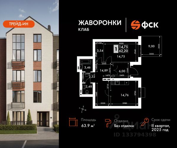 Прямая продажа от застройщика! Загородный жилой комплекс класса Комфорт Плюс. Продаётся 2-к квартира номер 107 общей площадью 51.48 кв.м на 4-м этаже 4 этажного дома. Без отделки. Особенности: - Квартира доступна к покупке в Trade-In. - Линейная планировка - максимальная функциональность и удобство. - Гибкая планировка - создайте пространство по своему вкусу. - Увеличенная высота потолков - ощущение простора и легкости. - Двухуровневая квартира - пространство и стиль в одном. - Второй свет - уникальная атмосфера с открытыми пространствами. - Терраса - место для загара и вечерних посиделок. - Вид из окна: улица - Просторная 2-комнатная квартира - Бесплатный трансфер до загородного поселка - 5 минут до МЦД-4 - Отличный вариант для проживания или инвестиций - Двухуровневая квартира - пространство и стиль в одном. - Своя благоустроенная набережная в поселке, - Престижная школа и детский сад на территории, - Закрытая территория и видеонаблюдение - Собственный парк вдоль набережной - Круглосуточная охрана - Зона с беседками и барбекю - Живописная река в пешей доступности Квартиру можно приобрести с предчистовой (White box) и чистовой отделкой. Вам не придётся заниматься черновыми работами, а трудоемкий ремонт мы возьмем на себя! Расположение комплекса: Для создания гармоничного пространства в проекте собрана вся необходимая инфраструктура, начиная от закрытых дворов с детскими площадками и зонами отдыха, тренажерного спортивного зала с мини-саунами и детской комнаты, до благоустроенной набережной, где разместится большой игровой хаб с прогулочным маршрутом и зоной барбекю. Благоприятная роза ветров и отсутствие производств влияют на качество воздуха. Вода и природа успокаивают и заряжают энергией. В жилом комплексе "Жаворонки Клаб" создана современная образовательная среда с полным циклом обучения - от детского сада до старших классов. Школа 560 мест с инновационным оснащением. Детский сад 260 мест. Все образовательные учреждения будут муниципальными и записаться в них сможет каждый маленький житель комплекса. Дорога до школы или детского сада займет не более 5 минут. Ваш ребенок поспит подольше и не опоздает к первому уроку! Здесь также будет расположена муниципальная поликлиника, административно-бытовой комплекс, магазины и кафе. Транспортная доступность: В 30 м от территории ЖК находятся остановки общественного транспорта, откуда можно добраться до ближайших железнодорожных станций Санино (5 мин.), Крёкшино (7 мин.) и Жаворонки (7 мин.), а в 10 минутах - остановки маршрутов, идущих до станций метро Саларьево и Парк Победы. Съезд на Минское шоссе расположен в 700 м от ЖК. Внутренняя инфраструктура: В рамках проекта будут построены муниципальные детский сад и общеобразовательная школа, административно-бытовой комплекс (магазины формата "у дома", точки бытовых услуг, street-retail, кафе, кофейня, аптека, а также многофункциональный торгово-развлекательный центр с ФОК и амбулаторией. Для удобства и комфорта жителей, когда все "под рукой" мы разм