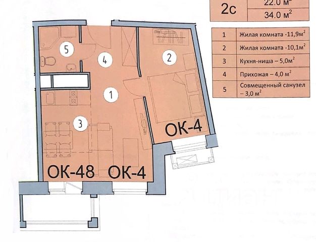 Общая площадь 59 кв.м.