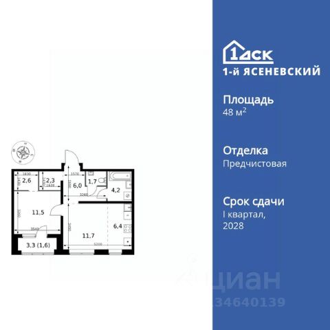 Прямая продажа от застройщика! Жилой Комплекс класса Комфорт Плюс. Продаётся 2-к квартира номер 155 общей площадью 50.2 кв.м. на 11-м этаже 18 этажного здания. Предчистовая отделка. Цена с учётом скидки. Особенности квартиры: - Квартиры рядом с метро - м. Корниловская 9 мин пешком - 63 га лесопарка за окнами - Школа c ИТ-кластером и бассейном. 2 детских сада - Организуем показ в удобное для вас время! - Мастер-зона с гардеробной. Просторное место для отдыха и удобного хранения вещей. - Распашная планировка - отличное сочетание удобства и свободы. - Увеличенное количество окон - дополнительное освещение и свежий воздух. - Гостевой санузел - комфорт и удобство для ваших гостей. - Евроформат - просторное и удобное жилье с отличной планировкой. - Можно оборудовать рабочее место - комфорт для работы и учёбы. - Возможность добавить спальное место - дополнительный комфорт для гостей. - Гардеробная - удобство для хранения и организации вещей. - Кладовая - дополнительное пространство для хранения. - Лоджия - уютное место для отдыха и тишины. Квартира с предчистовой отделкой. Вам не придется заниматься черновыми и трудоёмкими работы, а чистовую отделку и дизайн - сделайте на свой вкус. Информация о комплексе: ЖК "1-й Ясеневский": преимущества городской инфраструктуры и природы. Пешая доступность к метро, школе с бассейном и ИТ-кластеру, а также 63 га Троицкого лесопарка под окнами. Закрытая территория с бульварами, велодорожками, кафе и дворами без машин. Фруктовые деревья и городские сады создают уникальную атмосферу. Всего в 1 км от МКАД - идеальный баланс для современной жизни. Транспортная доступность: До метро "Корниловская" - 12 минут пешком До метро "Тютчевская" - 25 минут пешком До метро "Теплый стан" - 10 минут на транспорте До метро "Ольховая" - 30 минут на общественном транспорте Личный автотранспорт: Выезд на Калужское шоссе - 500 м МКАД - 1 км Внутренняя инфраструктура: ЖК "1-й Ясеневский" - идеальное место для семей с детьми. Рядом Троицкий лесопарк для прогулок, а во дворах - современные детские площадки, разработанные с участием психологов. В шаговой доступности два детских сада и школа на 1100 мест с ИТ-кластером, бассейном и классами робототехники. Всё для счастливого детства и успешного будущего. Квартира с предчистовой отделкой - ваш дизайн без черновых работ