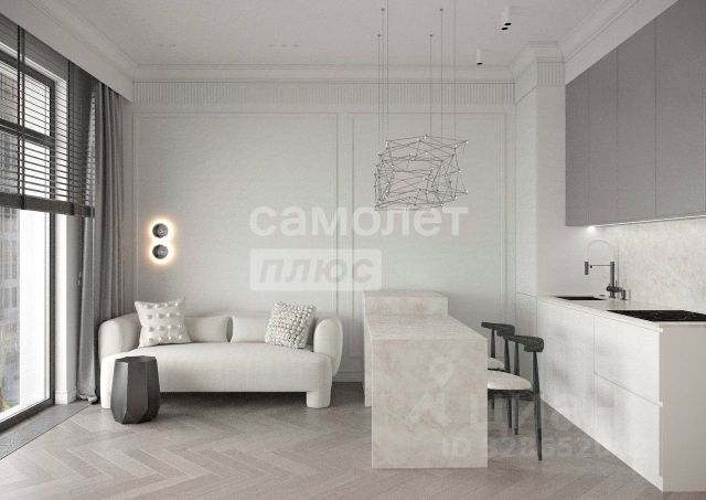 В отделке использованы высококачественные натуральные материалы, ремонт по авторскому дизайн-проекту. Кухонная зона, санузел и прихожая отделаны крупноформатным керамогранитом, тёплые полы в прихожей и санузле. В гостиной и спальне качественная инженерная доска, декоративные панели EGGER. Скрытые двери 2.4 с дополнительной шумоизоляцией.