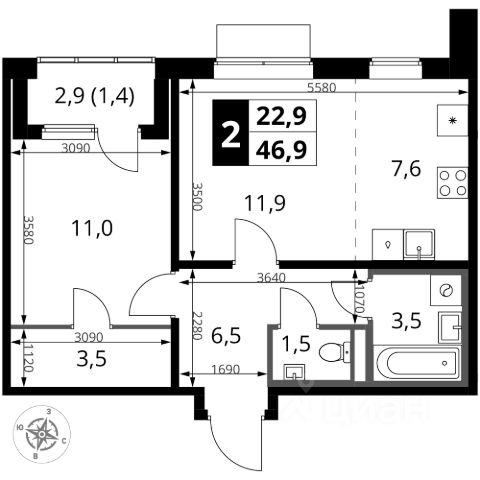 Прямая продажа от застройщика! Жилой Комплекс класса Комфорт Плюс. Продаётся 2-к квартира номер 593 общей площадью 46.9 кв.м. на 17-м этаже 18 этажного здания. Отделка Whitebox. Цена с учётом скидки. Особенности квартиры: - Квартиры рядом с метро - м. Корниловская 9 мин пешком - 63 га лесопарка за окнами - Школа c it-кластером и бассейном. 2 детских сада - Мастер-зона с гардеробной. Просторное место для отдыха и удобного хранения вещей. - Линейная планировка - максимальная функциональность и удобство. - Увеличенное количество окон - дополнительное освещение и свежий воздух. - Раздельный санузел - больше удобства для всех членов семьи. - Евроформат - просторное и удобное жилье с отличной планировкой. - Просторная мягкая зона - комфорт и уют для отдыха всей семьи. - Гардеробная - удобство для хранения и организации вещей. - Лоджия - уютное место для отдыха и тишины. Квартира с предчистовой отделкой (White box). Вам не придется заниматься черновыми и трудоёмкими работы, а чистовую отделку и дизайн - сделайте на свой вкус. Информация о комплексе: В жилом комплексе комфорт-плюс класса "1-го Ясеневского" доступны преимущества двух стилей жизни. Ведь в пешей доступности метро, школа с 25-метровым бассейном и IT-кластером и при этом целых 63 га благоустроенного Троицкого лесопарка под окнами, где так приятно дышать свежим воздухом и слушать пение птиц. Собственная закрытая территория "1-го Ясеневского" представляет собой уютный оазис. Здесь и зеленый освещенный бульвар для прогулок, система велодорожек, маленькая городская площадь, кафе, пекарни и кофе поинты. А еще дворы без машин и многоэтажная парковка. Изюминка территории - фруктовые деревья во дворах и городские сады. "1-й Ясеневский" - всего в 1 км от МКАД, на территории новой Москвы. Жилой комплекс, где есть все необходимое для современного человека. Транспортная доступность: До метро "Корниловская" - 12 минут пешком До метро "Тютчевская" - 25 минут пешком До метро "Теплый стан" - 10 минут на транспорте До метро "Ольховая" - 30 минут на общественном транспорте Личный автотранспорт: Выезд на Калужское шоссе - 500 м МКАД - 1 км Внутренняя инфраструктура: ЖК "1-й Ясеневский" можно назвать идеальным местом для жизни семьи с детьми. Здесь буквально за домом находится Троицкий лесопарк - излюбленное место прогулок молодых родителей. А во внутренних дворах под детские площадки выделены специальные зоны. Они оборудованы всем, что нужно для счастливого детства: современными и максимально безопасными качелями, песочницами и лазалками. Оборудование и игровые сценарии на детских площадках спроектированы вместе с командой детских психологов для правильного развития ребенка и для повышения их интереса. Также рядом с домом два детских садика, один из которых уже построен и школа на 1100 мест. Школу по праву можно назвать образцовым учебным заведением. В ней закладываются основы успешного будущего. Здесь есть класс робототехники, IT-кластер, 25-метровый бассейн и п