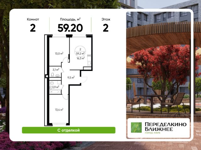 Продается двухкомнатная квартира с отделкой в 9 фазе города-парка "Первый Московский". Общая площадь квартиры - 51,5 кв. м, этаж 11 из 19. Срок сдачи - 2 квартал 2027 года. Тип дома - монолитный. Цена указана при 100% оплате. Новый корпус состоит из 3 секций: Все квартиры с отделкой White Box с возможностью дополнительного выбора дизайнерской отделки: Classic или Smart+ Город-парк "Первый Московский" расположен всего в 7 км по Киевскому шоссе (Новая Москва). Из города-парка прямой выезд на Киевское шоссе и трассу Солнцево-Бутово-Варшавское шоссе. ТРАНСПОРТНАЯ ДОСТУПНОСТЬ: - 5 мин. на личном автомобиле или 10 мин. на автобусе 189, 147, 193 до станции метро "Филатов Луг" - 5 мин. на личном автомобиле или 12 мин. на автобусе 863 до станции метро "Саларьево" - 6 мин. на личном автомобиле или 15 мин. на автобусе 333 до станции метро "Рассказовка" РАЗВИТАЯ ИНФРАСТРУКТУРА В ОКРУЖЕНИИ: - общеобразовательная школа 2120 (корпуса д1, д7, ш1-ш5) - детский сад 2120 (корпуса д2, д9) - школа искусств - городская больница, детская поликлиника, филиал 5 - подстанция скорой помощи 58 и пожарно-спасательный центр 313 - отдел полиции, отдел ГИБДД - торговые центры "Столица" и "Новомосковский" - стадион, каток, бассейн - кафе, продуктовые магазины, аптеки, фитнес-центры, салоны красоты и пр. БЛАГОУСТРОЙСТВО: - дворы без машин - разнообразные детские площадки и развивающие комплексы - детские площадки разделены по возрастным группам - максимальная близость корпуса к парку "Филатов луг" - озеленение территории с учетом зонирования, островками для отдыха ОСОБЕННОСТИ АРХИТЕКТУРЫ: - безбарьерные входные группы - велопарковка на -1 этаже - колясочные в каждой входной группе - коммерческие помещения на 1 этаже в трех секциях - кладовые помещения расположены на жилых этажах и на -1 этаже - в каждой секции корпуса - 4 лифта: 2 пассажирских, 2 грузовых - видеонаблюдение установленное в холлах первых этажей, у подъездов и на прилегающей территории АВТОРСКИЙ ДИЗАЙН: Входные группы выполнены по авторскому дизайну, оснащены системой "тёплый пол". В каждой входной группе будет располагаться комфортабельная зона ожидания, почтовые ящики с ячейкой для спама, колясочная, акцентные пуфы и столик.