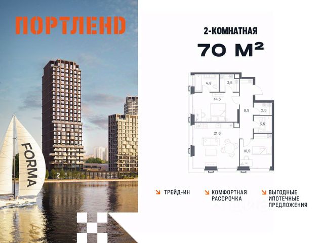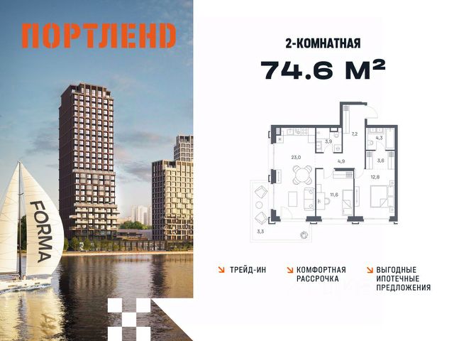 Указанная акционная стоимость доступна при 100% оплате или ипотеке без субсидирования. Цена действует до 02.03.2026 23:59:00. Стоимость без акции 34410160. Старт продаж! Продаётся 2-комнатная квартира от застройщика ГК "КОРТРОС" в жилом комплексе бизнес-класса УЛЬТИМА Сити. Квартира расположена на 14 этаже 52 этажного корпуса 2. Общая площадь 74,32 м². Без отделки. В квартире: • Окна на две стороны света • Мастер-спальня • Гардеробная • Два сан. узла УЛЬТИМА Сити — жилой комплекс бизнес-класса в перспективном районе на юго-востоке Москвы. На его территории появятся 9 башен на 756 этажей, двухуровневый подземный паркинг, собственная инфраструктура, включая детский сад и школу. Всего девелопер благоустроит территорию в 2,6 га. Ближайшая станция метро — "Южный порт". Она откроется в 2028 году и будет находиться в 2-х минутах ходьбы. А прямо напротив расположится остановка водного автобуса-электрохода "Синичка". Дорога от квартала будет удобна и для автомобилистов: - до Кремля — 12 км - до МКАД — 12 км - до выезда на ТТК — 3 км - до Садового кольца — 8 км В двух корпусах первой очереди УЛЬТИМА Сити этажностью 45 и 52 реализуется 1 079 квартир с продуманными, рациональными планировочными решениями. В ассортиментной линейке представлены однокомнатные квартиры от 28,2 до 61 кв. м, двухкомнатные лоты от 44,3 до 95,4 кв. м, квартиры с тремя (71 — 115,57 кв. м) и четырьмя спальнями (106,6 — 114,97 кв. м). В экспозиции также есть квартиры с террасами, лоджиями, тремя и четырьмя санузлами, а также с функциональными нишами-кладовыми на кухнях. Запроектированы и эксклюзивные двухуровневые резиденции со вторым светом, в том числе с видом на Москву-реку, площадью от 77,7 до 141,9 кв. м. В рамках проекта запланировано строительство 9 корпусов, школы на 500 учащихся и детского сада на 225 мест. Еще будет создана продуманная инфраструктура для жителей: детские и спортивные площадки, амфитеатр для мероприятий, беседки и теплицы для садоводства, коворкинг, детский клуб и ресторан с открытой террасой. Доступ в жилой комплекс осуществляется по биометрическому контролю - Face ID. Вокруг квартала будет приватная территория с видеонаблюдением и консьерж-сервисом 24/7. Лобби корпусов будут иметь двойные выходы: на улицу и во внутренний закрытый двор.