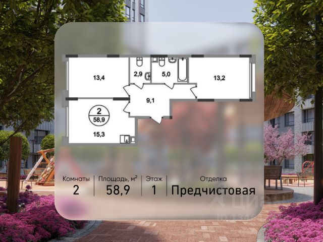 Продается двухкомнатная квартира без отделки в 18 фазе города-парка "Переделкино Ближнее". Общая площадь квартиры - 65,7 кв. м, этаж 13 из 17. Срок сдачи - 2 квартал 2027 года. Тип дома - монолитный. ТОЛЬКО ДО 31 МАРТА выгодные условия на приобретение квартиры в ипотеку или рассрочку. Звоните - и мы подберем оптимальное предложение под ваш запрос! Корпус состоит из 12 секций c переменной этажностью 8-17 этажей. Город-парк "Переделкино Ближнее" расположен в 8 км от МКАД по Боровскому шоссе. ТРАНСПОРТНАЯ ДОСТУПНОСТЬ: - 10 минут пешком до МЦД-4 "Мичуринец" - 14 минут на машине до станции метро "Филатов Луг" Сокольнической линии - 15 минут пешком до станции метро "Рассказовка" Солнцевской линии - 30 минут до центра Москвы - Прямой выезд на дорогу Солнцево-Бутово-Варшавское шоссе, минуя жилую застройку всего ЖК РАЗВИТАЯ СОЦИАЛЬНАЯ ИНФРАСТРУКТУРА: - 7 детских садов, 3 школы - детская музыкальная школа имени Б.Л. Пастернака - поликлиника для взрослых ГБУЗ ГП 212 ДЗМ филиал 70 - пожарная часть 66. Аварийно-спасательный отряд 6 ГКУ - банки, продуктовые магазины, аптеки, фитнес центры, салоны красоты и пр БЛАГОУСТРОЙСТВО: - дворы без машин - игровые зоны и развивающие детские площадки - детские площадки разделены по возрастным группам - зоны для пассивного отдыха - зоны для занятий спорта ОСОБЕННОСТИ АРХИТЕКТУРЫ: - переменная этажность открывает видовые характеристики на реку Алешинка и на лесопарковую зону - увеличенное остекление в квартирах - высокие потолки от 3,03 м. - безбарьерные входные группы - колясочные в каждой входной группе - кладовые помещения расположены на -1 этаже каждой секции и на 2-17 жилых этажах в секции 11 - коммерческие помещения на 1 этаже в 11 и 12 секциях - в секциях 2-4, 6-7, 11-12 по 2 лифта: 1 пассажирский, 1 грузовой - в секциях 1, 5, 8-10: 1 грузовой лифт - мусоропроводы в домах не предусмотрены, запроектированы специальные зона для сбора мусора - на фасаде предусмотрены корзины для установки кондиционеров. - видеонаблюдение установленное в холлах первых этажей, у подъездов и прилегающей территории АВТОРСКИЙ ДИЗАЙН: Входные группы выполнены по авторскому дизайну, оснащены системой "тёплый пол". В каждой входной группе будет располагаться комфортабельная зона ожидания, почтовые ящики, колясочная, акцентные пуфы и столик.