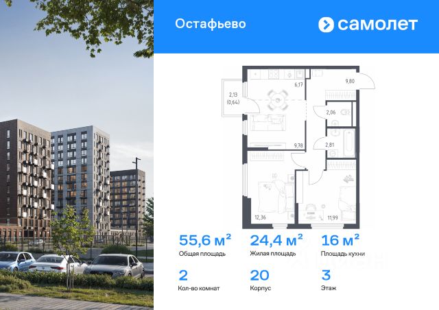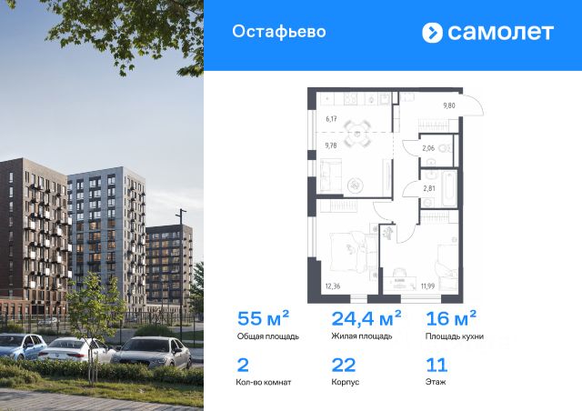 Строим кварталы для жизни с заботой о будущем. Предлагается 2-комнатная квартира комфорт-класса 57,4 кв.м в корпусе 22 на 14 этаже, в ЖК "Остафьево" Квартира без отделки. Доступность опции "отделка" и возможность комплектации мебелью и декором уточняйте у застройщика. Приобрести квартиру возможно по специальным акциям от застройщика, с текущими условиями акций можно ознакомиться в блоке "Акций". Цена динамическая и может отличаться, уточняйте актуальность у застройщика. "Остафьево" — масштабный жилой комплекс в Новой Москве, рядом с одноименным музеем-усадьбой и городским парком "Барыши". До станций МЦД "Щербинка" и "Остафьево" можно добраться на автомобиле за 57 минут. Часть домов уже сдана, на территории открыты две школы и три детских сада, а в будущем будет построена поликлиника, ТЦ, еще одна школа и три детских сада. Все необходимое рядом: на первых этажах домов работают магазины, аптеки и кафе. Дворы — приватные мини-парки без машин и посторонних. Кроме игровых площадок, для детей обустроили тематический плейхаб "Маяк". В будущем появятся плейхаб "Алиса в стране чудес", арт-объект "Тропа зеркал", а также большой ландшафтный парк. В квартале — монолитные дома комфортной высоты, от 10 этажей. Светлые фасады украшают кирпичные вставки в теплых природных оттенках.