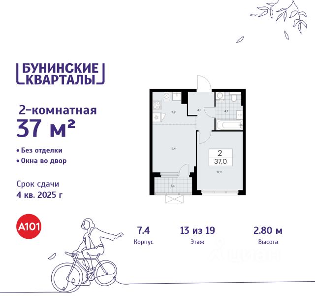 Продается двухкомнатная квартира 1184 в новостройке ЖК "Бунинские кварталы" по адресу Москва, ТиНАО, Новомосковский АО, Сосенское С/П, жилой комплекс Бунинские Кварталы, 7.4, район Коммунарка, Новомосковский административный округ, Москва. Общая площадь квартиры - 42.60 кв. м., этаж 15 из 19, секция 16. Тип проекта, по которому построен дом - монолит, компания-застройщик - ООО "А101". Стоимость квартиры - 15582228 Р. ПРЕДЛОЖЕНИЯ ОТ ЗАСТРОЙЩИКА В ФЕВРАЛЕ 2026: Скидки до 10% на все квартиры. Только в офисах продаж до 28 февраля. Ипотека от 13,9 % для всех! На весь срок. "Семейная ипотека" вернулась. Ставка от 3,5 % на весь срок! Без удорожания! Выгодное ипотечное комбо: Ипотека от 2200 р./мес. и от 6 % после рождения ребёнка! Ипотека для всех "Держи пять!" - ставка 5 % на 2 года! *более подробную информацию по скидкам и акциям уточняйте в отделе продаж ЖК "Бунинские кварталы" строится на юго-западе Москвы. Монолитные дома в лаконичной стилистике гармонируют с живописной природой. Из любой точки района удобно добираться до природных объектов, ключевых транспортных узлов, крупных торговых, спортивных, деловых и медицинских центров. Концепция уникального благоустройства района - "Выходи гулять!". Здесь появятся эстрада для районных творческих мероприятий, спортивные и игровые площадки, скейт-парк, дружелюбные пространства для домашних питомцев, благоустроенная набережная Ивановского пруда. В районе формируется собственная развитая инфраструктура: современные школа на 1100 мест и 2 детских сада на 540 малышей, магазины у дома и сетевые супермаркеты, фитнес, кафе, салоны, детские развивающие центры. Крытый каток "Самолёт Арена" - в 10 минутах пешком. За 15 минут можно дойти до действующей станции метро "Потапово". Предусмотрены удобные автомобильные выезды на проспект Куприна и улицу Александры Монаховой. Особенности "Бунинских кварталов": - ст. метро "Потапово" - 15 минут пешком - своя школа и детские сады - безопасные дворы без машин с системой контроля доступа - насыщенная инфраструктура - в шаговой доступности и на первых этажах домов