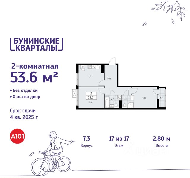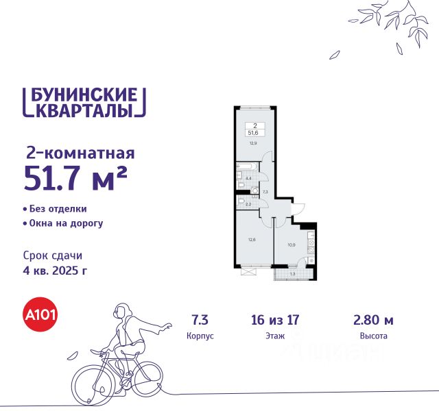 Продается двухкомнатная квартира 163 в новостройке ЖК "Бунинские кварталы" по адресу Москва, ТиНАО, Новомосковский АО, Сосенское С/П, жилой комплекс Бунинские Кварталы, к1.2, район Коммунарка, Новомосковский административный округ, Москва. Общая площадь квартиры - 101.60 кв. м., этаж 2 из 16, секция 2. Тип проекта, по которому построен дом - монолит, компания-застройщик - ООО "А101". Стоимость квартиры - 24342760 Р. ПРЕДЛОЖЕНИЯ ОТ ЗАСТРОЙЩИКА В ФЕВРАЛЕ 2026: Скидки до 10% на все квартиры. Только в офисах продаж до 28 февраля. Ипотека от 13,9 % для всех! На весь срок. "Семейная ипотека" вернулась. Ставка от 3,5 % на весь срок! Без удорожания! Выгодное ипотечное комбо: Ипотека от 2200 р./мес. и от 6 % после рождения ребёнка! Ипотека для всех "Держи пять!" - ставка 5 % на 2 года! *более подробную информацию по скидкам и акциям уточняйте в отделе продаж ЖК "Бунинские кварталы" строится на юго-западе Москвы. Монолитные дома в лаконичной стилистике гармонируют с живописной природой. Из любой точки района удобно добираться до природных объектов, ключевых транспортных узлов, крупных торговых, спортивных, деловых и медицинских центров. Концепция уникального благоустройства района - "Выходи гулять!". Здесь появятся эстрада для районных творческих мероприятий, спортивные и игровые площадки, скейт-парк, дружелюбные пространства для домашних питомцев, благоустроенная набережная Ивановского пруда. В районе формируется собственная развитая инфраструктура: современные школа на 1100 мест и 2 детских сада на 540 малышей, магазины у дома и сетевые супермаркеты, фитнес, кафе, салоны, детские развивающие центры. Крытый каток "Самолёт Арена" - в 10 минутах пешком. За 15 минут можно дойти до действующей станции метро "Потапово". Предусмотрены удобные автомобильные выезды на проспект Куприна и улицу Александры Монаховой. Особенности "Бунинских кварталов": - ст. метро "Потапово" - 15 минут пешком - своя школа и детские сады - безопасные дворы без машин с системой контроля доступа - насыщенная инфраструктура - в шаговой доступности и на первых этажах домов