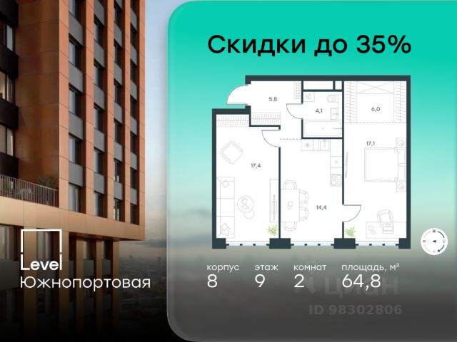 В северной части района Печатники продается 2-комнатный апартамент площадью 45.10 кв.м без отделки. Апартаменты расположены на 4 этаже 13-этажного корпуса 14 в жилом комплексе комфорт-класса Level Южнопортовая (компания Level Group/Левел групп). Отличная транспортная доступность: - 10 мин. пешком до станции метро "Кожуховская"; - 20 мин. пешком до станции МЦК "Дубровка"; - 3 мин. на авто до ТТК; - 13 мин. на авто до Садового кольца; - 15 мин. на авто до Бульварного кольца. Продуманный архитектурный проект: - авторская архитектура от бюро СПИЧ; - уникальные виды на реку, парки и достопримечательности города; - высота потолков в квартирах до 6 м; - окна высотой до 1,87 м с высоким коэффициентом сопротивления теплоотдаче. Расположение: Level Южнопортовая строится в северной части района Печатники - самой приближенной к центру. Здесь будет сформирован новый район "Южный порт", где построят крупный жилой и общественно-деловой центр, аналогичный Москва-Сити. В течение 10-12 лет в этом месте появятся не только жилые дома, но и развитая инфраструктура для жизни и работы. А еще совсем рядом находится набережная Москвы-реки, где планируется построить причалы для речных трамвайчиков и канатную дорогу. Уже сейчас вокруг жилого комплекса работают десятки магазинов и торговых центров, рядом расположено 6 парков, среди которых музей-заповедник "Коломенское". В 10 минутах пешком - 2 муниципальных и 2 частных детских сада, 7 общеобразовательных школ. Внутренняя инфраструктура: Для отдыха жителей в каждом корпусе предусмотрено лобби, оснащенное местами для отдыха, гостевыми санузлами и лапомойками, а в отдельных корпусах - камином. За счёт больших окон и высоких потолков пространства будут наполнены воздухом и светом. На первых этажах жилого комплекса откроются магазины, салоны красоты, фитнес-центр. Для детей строятся собственные детский сад и школа. Благоустройство: Внутренний двор комплекса разработан совместно с бюро GAFA. Основная идея - создать аналог Центрального парка в Нью-Йорке, гармонично сочетая высотные здания и большое изолированное парковое пространство. Вся площадь двора-парка будет огорожена и составит более 2 га, из которых 45% - озеленение. Одним из самых важных ландшафтных элементов здесь станет небольшая речка, наполняющаяся во время дождя. Вокруг неё появится сеть из островов, внутри которых расположатся тематические зоны спорта и отдыха. Технологии и инженерия: - автоматическая передача в управляющую компанию показаний квартирных счётчиков; - телефонная связь, телевидение и интернет на базе оптической мультисервисной сети; - гостевой Wi-Fi в лобби и на территории двора; - единый ключ доступа для входа на территорию комплекса.