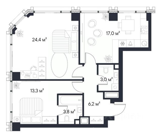 Продаётся просторная 2-комнатная квартира площадью 58,91 м², расположенная на 8 этаже корпуса 1.1 — идеальный выбор для тех, кто ценит эстетику высоты, панорамы города и современный премиум-класс. С декабря 2025 года совместно со Сбер действует ипотечная программа с фиксированной ставкой 13,9% на весь срок кредитования. Также для первой очереди строительства доступна программа рассрочки с комфортными фиксированными платежами от 60 000 рублей до конца 2026 года. Подробности — у менеджеров отдела продаж в онлайн-чате справа. Первый Нагатинский — самый крупный жилой квартал в локации, формирующий новый облик района и задающий стандарты городского премиум-класса. Проект сочетает продуманную архитектуру, премиальные общественные пространства и масштабную инфраструктуру, создавая среду, где вдохновение и удобство встречаются ежедневно. Транспортная доступность Находится в сердце Южного округа Москвы — районе с уже сложившейся и богатой инфраструктурой. Внешняя среда проекта усиливает комфорт жизни: рядом расположены зелёные парки, современные спортивные объекты, торговые центры и престижные образовательные учреждения. м. Нагатинская ~ 3 мин. МЦК Верхние котлы ~ 5 мин. Речной причал ~ 15 мин. ТТК ~ 10 мин. Садовое кольцо ~ 15 мин. Благоустройство премиального уровня Ландшафтные архитекторы бюро А4 создали систему взаимосвязанных пространств для отдыха, прогулок и гармонии. Уникальная wellness-зона вписана в природный ритм Москвы и формирует атмосферу спокойствия. • 10 000 зелёных насаждений • Японский сад • Зона у огня с биокамином • Зона у воды • Арт-тропа "Променад" • Воркаут-площадка • Гамаки для отдыха • Нетворкинг под открытым небом Инфраструктура нового поколения Квартал формирует современный формат городской жизни, объединяя приватность, удобство и пространство для развития. Всё расположено внутри проекта — без необходимости покидать территорию. • Скай-бар на 28 этаже • Гурме-вилла • Приватный СПА и фитнес премиум-класса • Тренажёрный зал и студии групповых тренировок • Хамам и финская сауна • Коворкинг-клуб • Клубный лаундж • Кинотеатр и сигарная комната • Музыкальная студия • Арт-зал с подиумом • Детские комнаты, игровые зоны и творческие студии • Круглогодичные детские площадки • Пляжный клуб на берегу Москвы-реки Образовательный кластер внутри квартала Внутри квартала созданы пространства для образования, творчества и игр, где дети могут развиваться, раскрывать таланты и чувствовать себя в безопасности — не покидая территории своего дома. Школа нового поколения на 1000 учеников Лучший детский сад в Москве с бассейном Тематическая детская площадка Гора Фудзияма и Большая волна