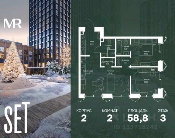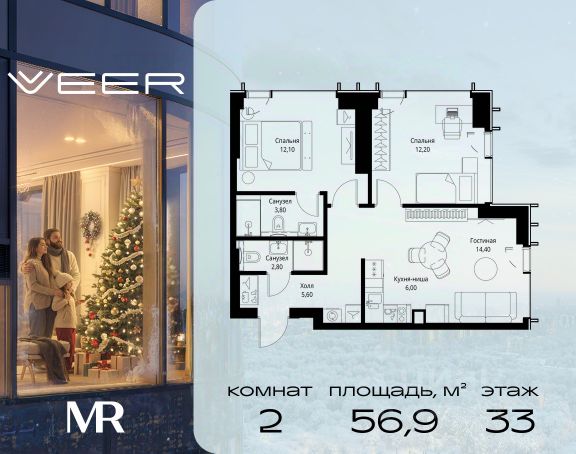 Прямая продажа от застройщика. Продаётся 2-комнатная квартира общей площадью 54.20 м² без отделки в ЖК VEER на 48-м этаже 59 этажного дома. Жилой комплекс бизнес-класса VEER от компании MR — это футуристичный мультиквартал, расположенный в престижной локации на западе Москвы. Благодаря переменной высоте башен — двух 22-этажных, 46-этажной и двух 59-этажных — возникает динамичность в силуэте комплекса, а его яркий образ вносит разноплановость в архитектурный пейзаж района. Расположение и транспортная доступность: • VEER удобно расположен в непосредственной близости от Кутузовского проспекта, обеспечивая быстрый доступ к центральным районам Москвы • Комплекс находится непосредственно напротив самого большого природного заказника в Москве - парка "Долина реки Сетунь", а за семь минут можно доехать до памятника садово-паркового искусства, Троекуровского леса. • Всего в 15 минутах - центр города, самая престижная бизнес-школа управления России "Сколково", дом творчества "Переделкино". • 18 минут пешком до м. "Давыдково" • Открытие новых станций метро в шаговой доступности в будущем Инфраструктура: Разнообразить свой день резиденты VEER смогут также проводя больше времени на свежем воздухе. Двор разделен на 4 зоны разных эмоций и действий, которые пересечены и соединены веерными прогулочными маршрутами: • Спортивная площадка устроена в глубине "Кленовой рощи" • В "Чайном домике" будет создан навес с утеплением для отдыха в любую погоду • Площадки для детей воплотятся в "Волшебный лес" с цветами, зеркалами и световым дизайном • "Центральная площадь" устроена у водного оазиса живописного пруда. Компания MR предлагает своим клиентам специальные условия приобретения квартир в рамках программ ипотечного кредитования от банков-партнеров.
