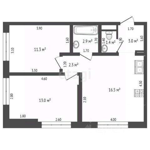 6) Малый санузел (постирочная), 2,3 кв.м.
