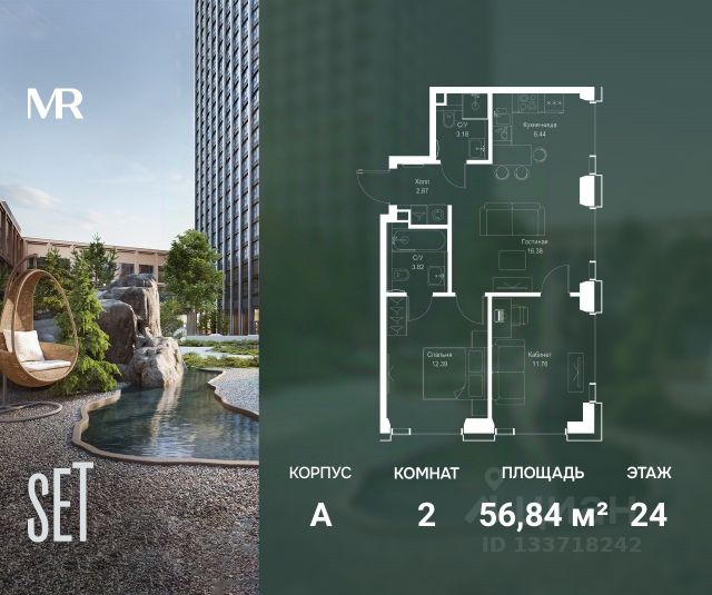 Прямая продажа от застройщика. В ЖК SET продается 2-комнатная квартира площадью 49.20 м², расположенная в корпусе А, на 37 этаже 52 этажного дома. SET имеет стратегически выгодное расположение в ЗАО, в районе с большой историей и блестящим будущим: между природной зоной долины реки Сетунь и Кутузовским проспектом. В рамках возведения первой очереди предусмотрено три корпуса высотой 18, 45 и 59 этажей. На верхних этажах спроектированы общедоступные смотровые площадки с панорамным обзором на центр столицы. Преимущества проекта: • Функциональные планировочные решения • Контроль проникновения через входную дверь • Система управления освещением и температурой в квартире • Система защиты от протечек с функцией перекрытия воды • Вход в подъезд по биометрическим считывателям Face ID • Скоростные лифты • Двухуровневый подземный охраняемый паркинг на 495 машино-мест Застройка SET включает в себя не только жилые корпуса, но и инфраструктурные объекты. Все необходимое для повседневного комфорта будет расположено в шаговой доступности: • Фитнес-клуб с бассейном • Ведущая городская школа, детский сад и школа искусств • Центр культуры и досуга • Медицинский центр • Кафе и рестораны Расположение комплекса: Пешком: • Метро "Давыдково" - 17 минут • Парк "Долина реки Сетунь" - 3 минуты • Открытие новых станций метро в шаговой доступности в будущем Инфраструктура: Разнообразить свой день резиденты VEER смогут также проводя больше времени на свежем воздухе. Двор разделен на 4 зоны разных эмоций и действий, которые пересечены и соединены веерными прогулочными маршрутами: • Спортивная площадка устроена в глубине ""Кленовой рощи"" • В ""Чайном домике"" будет создан навес с утеплением для отдыха в любую погоду • Площадки для детей воплотятся в ""Волшебный лес"" с цветами, зеркалами и световым дизайном • ""Центральная площадь"" устроена у водного оазиса живописного пруда. " На машине: • "Москва-Сити" - 15 минут • Садовое кольцо - 20 минут • ТЦ "Океания" - 8 минут • ТЦ "Времена года" - 13 минут • Сколково - 12 минут • Гребной канал - 17 минут Компания MR предлагает своим клиентам специальные условия приобретения квартир в рамках программ ипотечного кредитования от банков-партнеров.