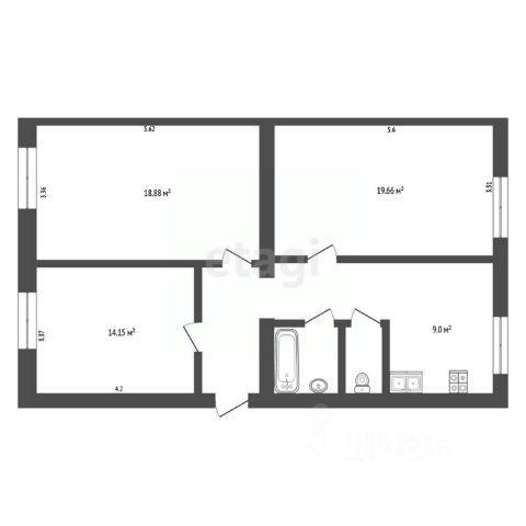 * Универсальная планировка квартиры с просторной комнатой (21.9 м²) и очень тихой, расположенной за толстой несущей стеной спальней (11 м²) с гардеробной/кладовой (2,3 м²), уютной и удобной (все под рукой) кухней (5.2 м²) и застекленной лоджией (2 м²), востребованная как на рынке аренды, так и для проживания. Общая площадь с учетом лоджии 47,4 м², без лоджии 45,4 м².