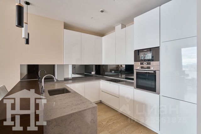 Лот: 82551. В продаже апартамент с отделкой и видом на Москву-реку в башне "Меркурий" в ММДЦ "Москва-Сити". Пространство оформлено в современном стиле, апартамент частично меблирован и оснащен й бытовой техникой Kuppersbusch.