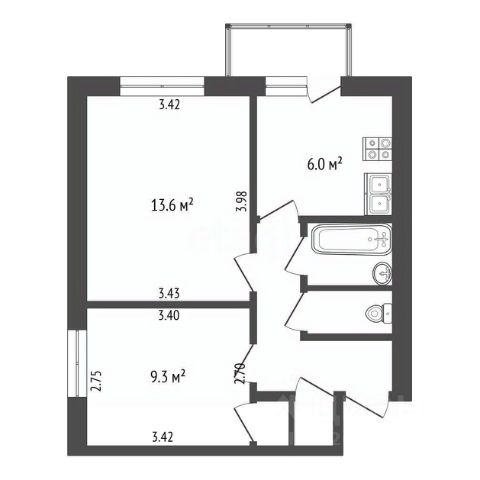 О КВАРТИРЕ: 7 этаж 12 эт. дома, общая площадь с балконом -38,9 кв.м., без учета балкона - 38,2 кв.м., жилая- 23,7 кв.м., комнаты смежно-изолированные с отдельным входом в каждую комнату - 14,3 кв.м. и 9,4 кв.м., кухня - 6,3 кв.м., встроенные шкафы в коридоре и спальне, сан. узел - раздельный. Перепланировок не было.