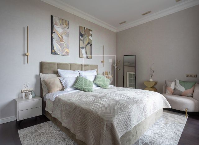 В квартире выполнен качественный авторский ремонт, полностью укомплектована дизайнерской мебелью и премиальной бытовой техникой: Electrolux, Liebherr, Miele.