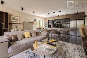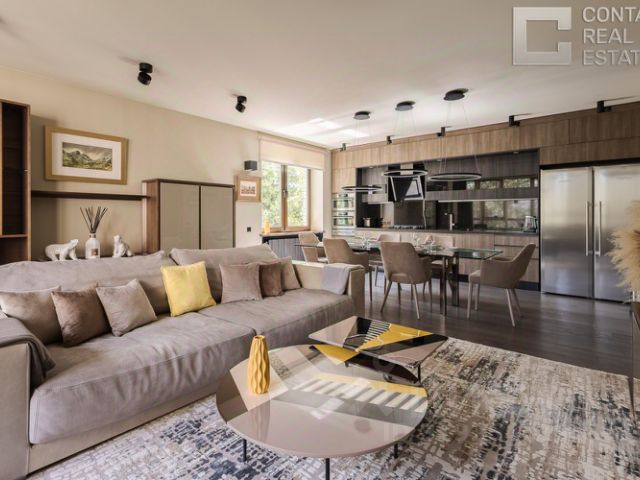 Есть кондиционер с охлаждением/подогревом воздуха, проветриватели с рекуперацией тепла. Вся техника очень достойного уровня: Asko, Smeg.При желании установить электроплиту есть такая возможность ( кабель заложен). Интернет скоростной, 3 телевизора подключены через индивидуальные интернет розетки, сигнал WiFi по всей квартире.