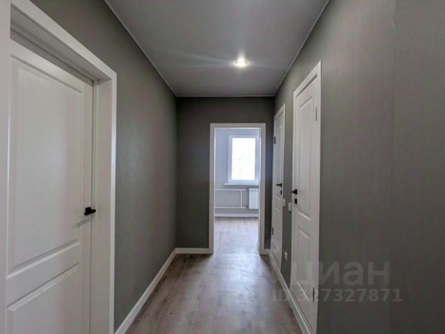 Напольные покрытия: в прихожей — керамогранит, в жилых зонах — кварц-винил. Установлены натяжные потолки, реализованы различные сценарии освещения.