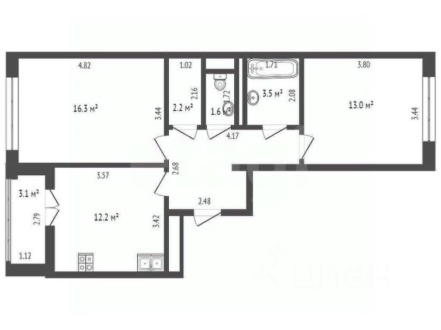 Квартира продается вместе с кладовой комнатой площадью 5 метров. Кладовая непосредственно примыкает к квартире. На фото видно что она находится в метре от входной двери.