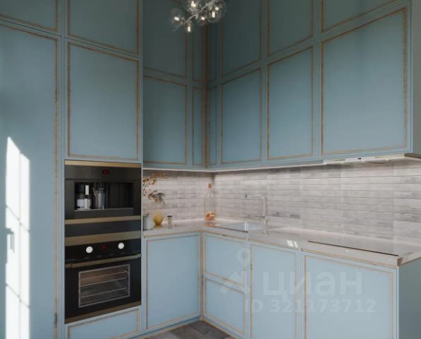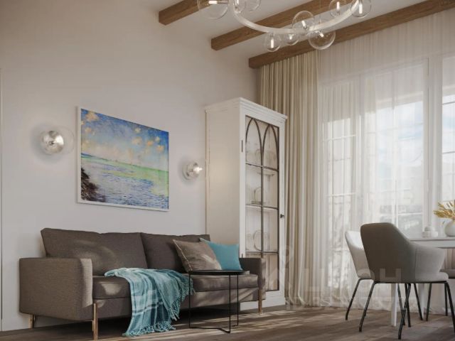 светлая квартира состоит из двух частей общей площадью 73,4 м² и высокими потолками 3 м и панорамным остеклением