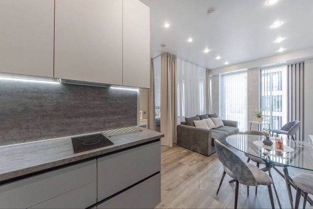 Общая площадь квартиры составляет 79,6 кв м (по документам), по факту 85 кв м (т.к. присоединена лоджия к комнате), евро 3-х комнатная (две спальни и кухня-гостиная). Ремонт в квартире был сделал в 2022 году.