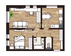 Это полноценная двушка (не евро-двушка), с очень удачной планировкой, с двумя отдельными изолированными комнатами и кухней. Общая площадь 49,4 м2. Комнаты 11,24 и 11,01 м2, кухня 10,46 м2.