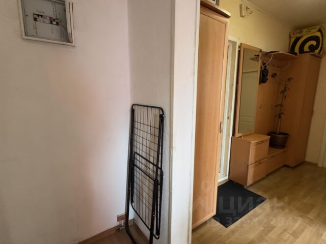 Коридор шириной 1,67 см, в нем два шкафа. Один платяной на 2 секции: полки и штанга. И второй шкаф в нише 80 см шириной с полками почти под потолок. Фигурное новое зеркало, консоль и банкетка с полкой для обуви в состояниии новой.