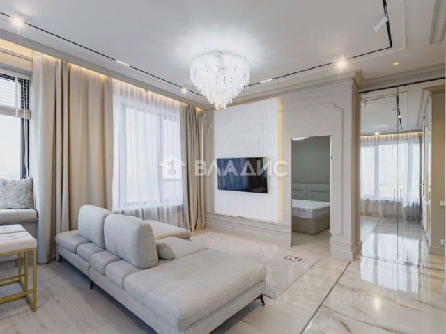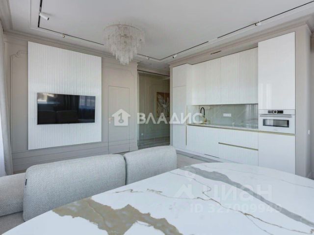 В квартире выполнен светлый дизайнерский ремонт, новая мебель и предметы интерьера, большое количество шкафов и мест хранения, встроенная качественная бытовая техника: холодильник, посудомоечная машина, духовой шкаф, индукционная плита, стиральная машина, кондиционер, качественная европейская сантехника. Квартира полностью укомплектована, остаётся всё: мебель, техника, декор, что позволяет покупателю заселиться быстро и без лишних хлопот!