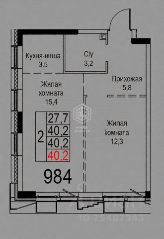 Общая площадь квартиры 49,5 м², правильная форма, расположена на 29 этаже 30-этажного дома, высота потолков 2,95 м. Гостиная с кухней 17,3 м², спальня 16,6 м², 2 санузла 4,2 + 1,9 м², коридор 5 м².