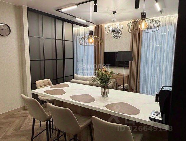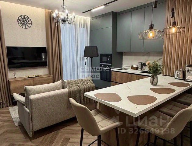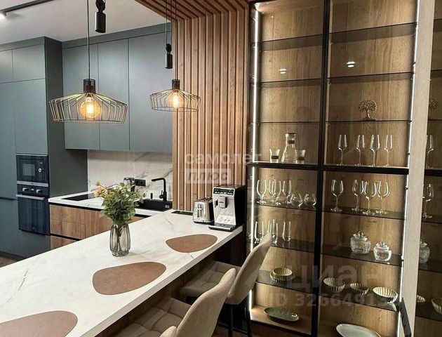 Квартира состоит из - уютная изолированная спальня, с большим высоким гардеробом, разными видами освещения; светлый зал/студио с полноценным раскладывающимся диваном, с отдельностоящей обеденной зоной; зона кухни с мебельным гарнитуром класса люкс, выполнена из натурального шпона, включая фурнитуру Blum, со встроенной качественной техникой известных брендов - встроенный холодильник, варочная панель, дизайнерская вытяжка подключенная напрямую в вытяжную вентиляцию, встроенная стиральная машина, столешница выполнена на заказ из натурального мрамора Imperador Gold, стеновая панель из штучной итальянской плитки; ванная комната выполнена с использованием итальянской эксклюзивной штучной плитки, установлен тропический душ, встроенная сантехника, есть душ биде. Телевизор Philips со Смарт-ТВ высокого разрешения 4К, и умной подсветкой Ambilight, установлен высокоскоростной интернет, умное освещение, система кондиционирования Electrolux. Дорогостоящая мебель, предметы интерьера и дизайна, гипсовая лепнина, итальянские светильники. Для хранения вещей предусмотрены - гардеробная, полноценный шкаф при входе, также большой шкаф в спальне, шкаф в санузле, кровать с подъемным механизмом. В ЖК есть двухуровневая парковка, и вся необходимая инфраструктура (магазины, супермаркеты, открывается фитнес-клуб, кафе, рестораны, и многое другое)
