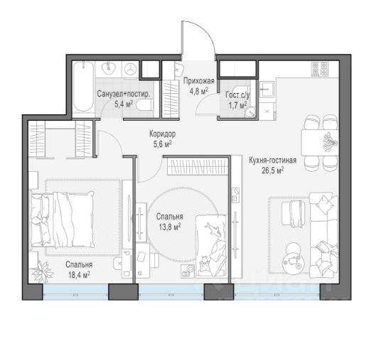 В шаговой доступности расположены: продуктовые магазины, торговые, развлекательные и фитнес центры, детские сады, школы, МФЦ, детская и взрослая поликлиники, кафе, банки, пункты выдачи товаров. Есть все для комфортного проживания.